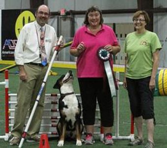 Jan has spent most of her life starting young horses for the show ring. She has owned Greater Swiss Mountain Dogs for 15 years and her dog, Scopey, was the first Swissy to earn a MACH. She trains her dogs with lots of body awareness skills and use of their hindquarter just as she would start a young horse. She competes with her Swissies in drafting,obedience,rally,agility and conformation.